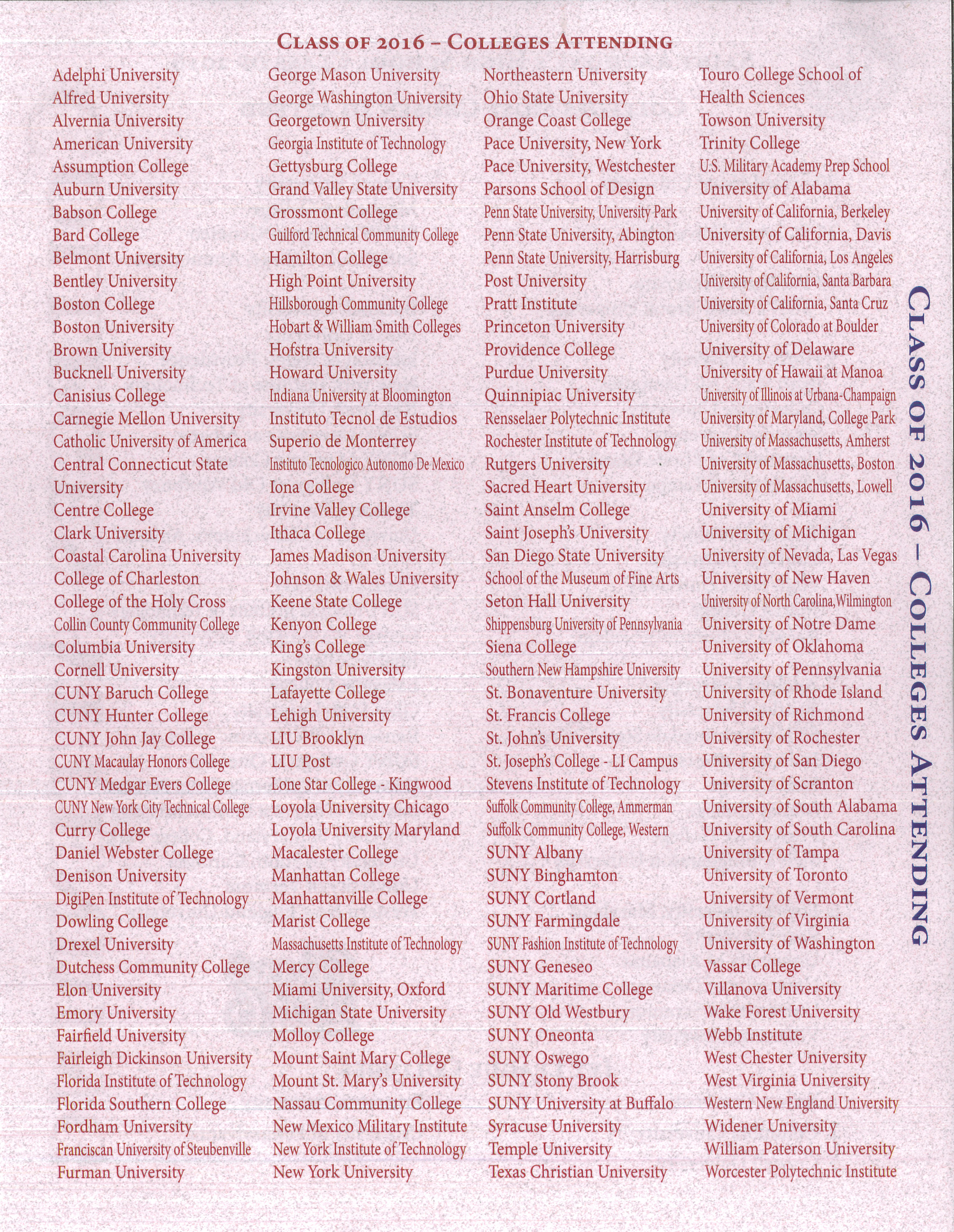 Class of 2016 College Stats