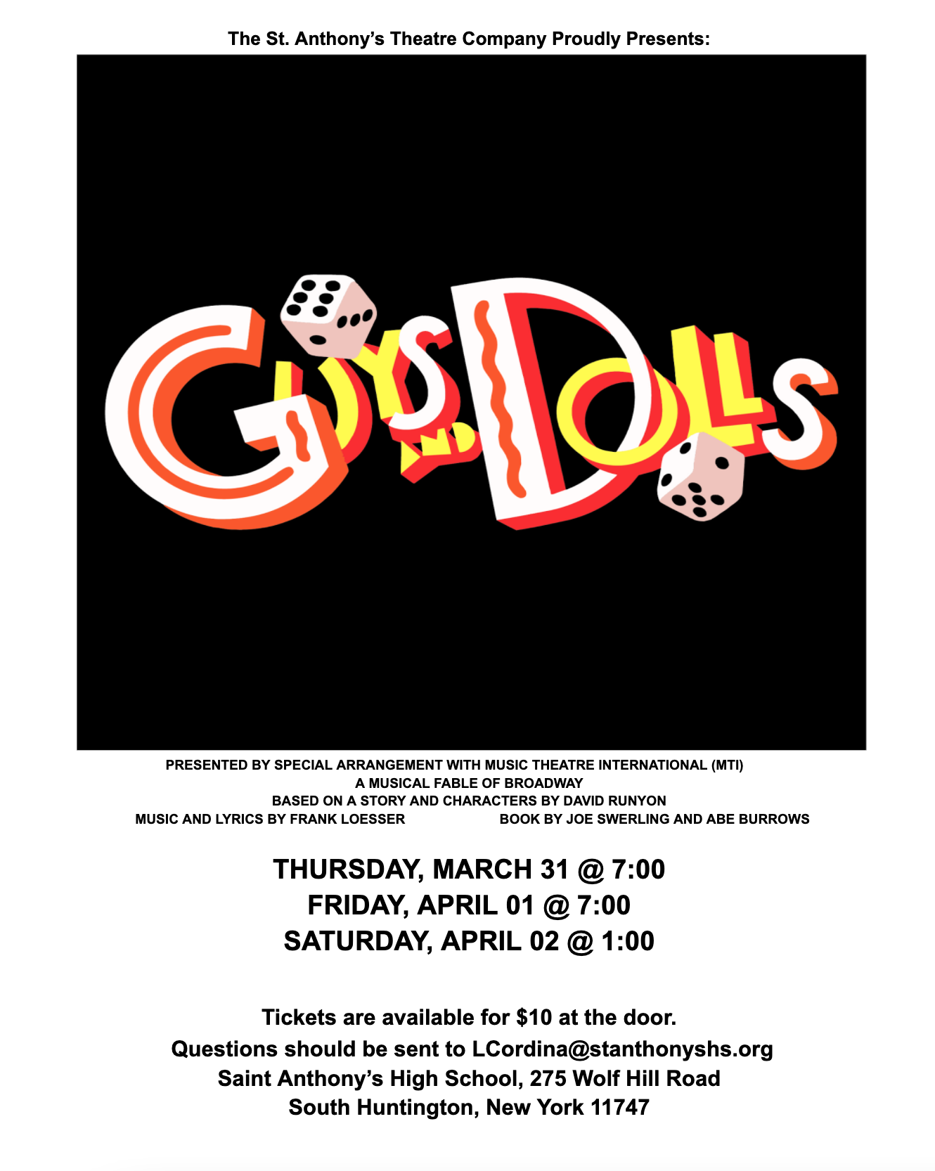 Guys and Dolls: Thursday, Friday, Saturday Posted by robcordina Categories Friar News Date March 31, 2022 Share: robcordina Previous post Act of Consecration for Russia and Ukraine March 31, 2022 Next post Who Is Carlo Acutis? April 1, 2022 You may also like Minute with the Monk March 30, 2026 Brother David’s April Newsletter March 30, 2026 Spring Musical: Come From Away March 22, 2026